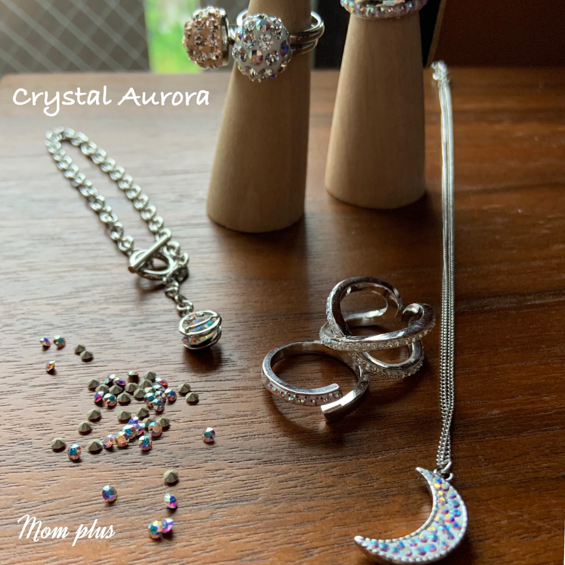 パヴェボールのようなモチーフのリングです。実はとても使いやすく、重ね付けされている方も多くいらっしゃいます。シンプルでありながら少し華やかなクリスタルオーロラカラーはどんなシーンにも。多少リングサイズが調節出来るフレキシブルなタイプのリングです。