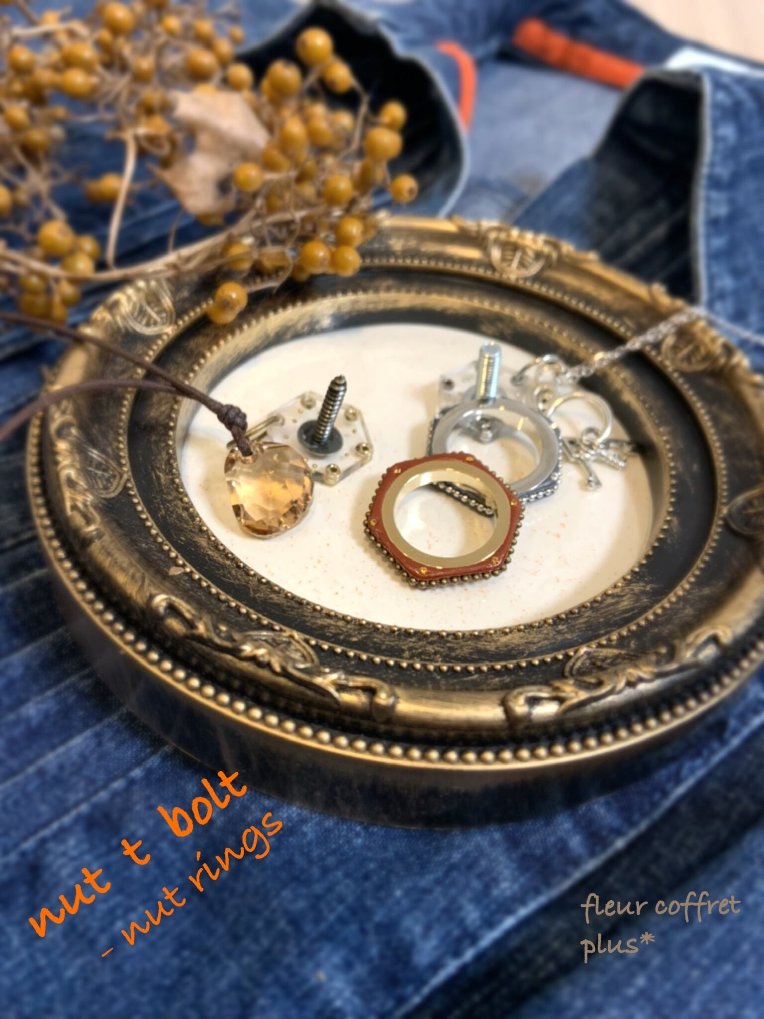 グルーデコとピンワークの展示会【Wacha.FES】出展作品のbolt t nutシリーズ『bolt necklace』になります。