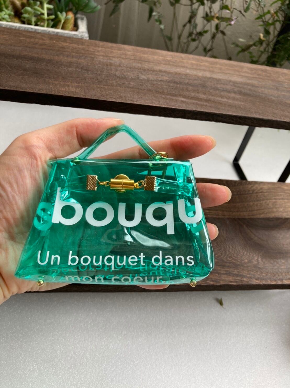 ケリー型ミニバッグ/ロゴクリアグリーン(丸カラビナ大付き) /byM