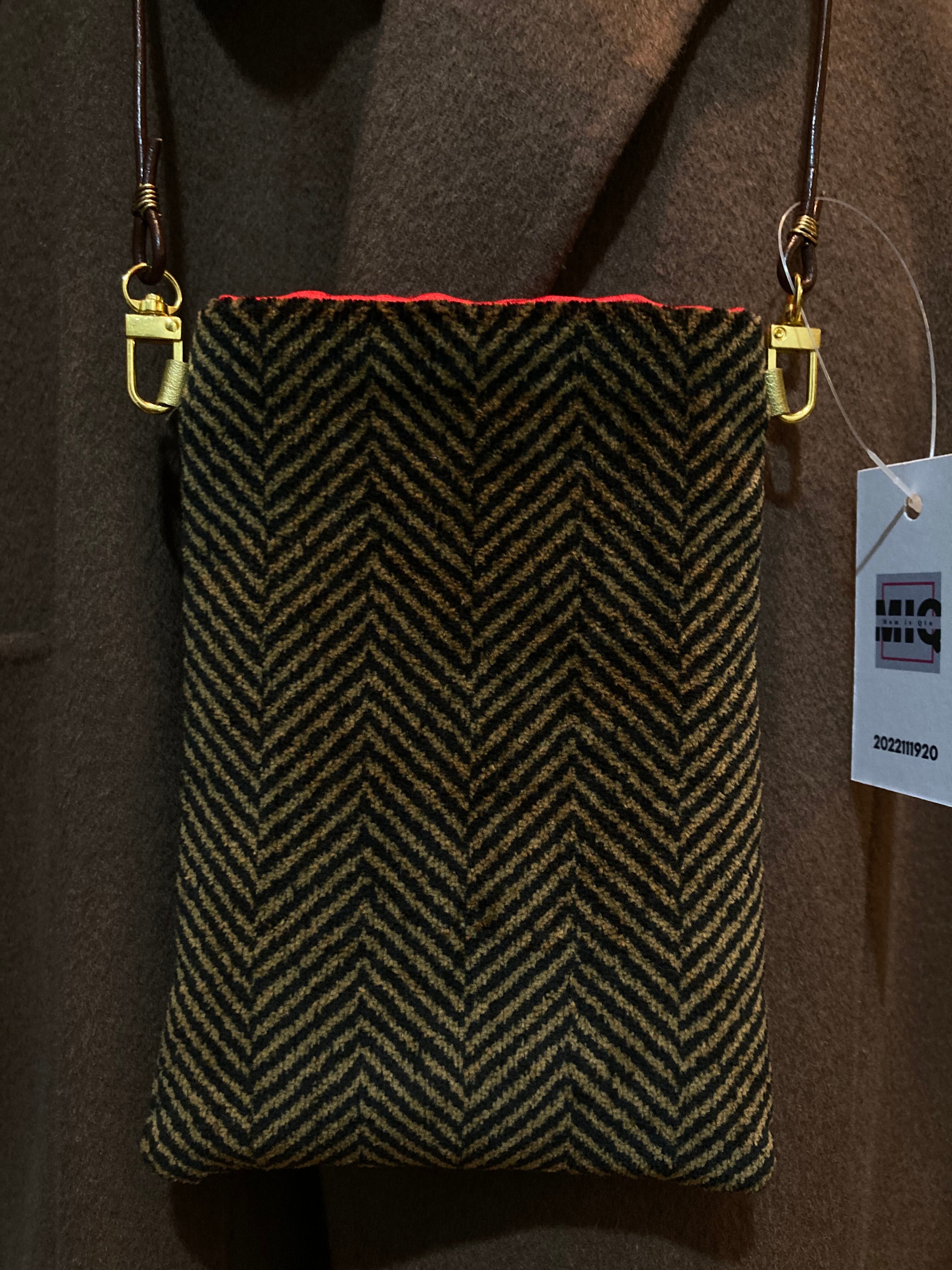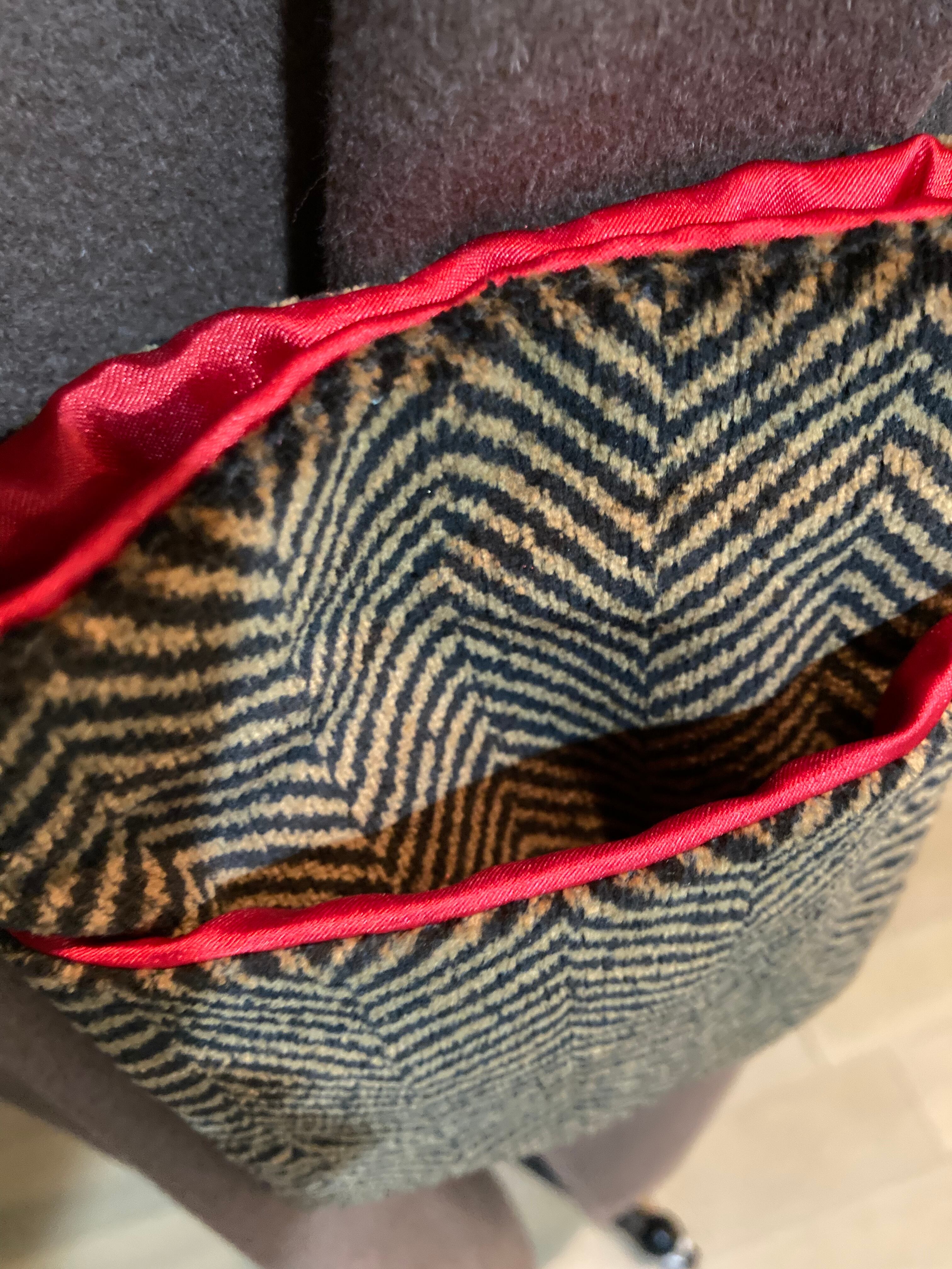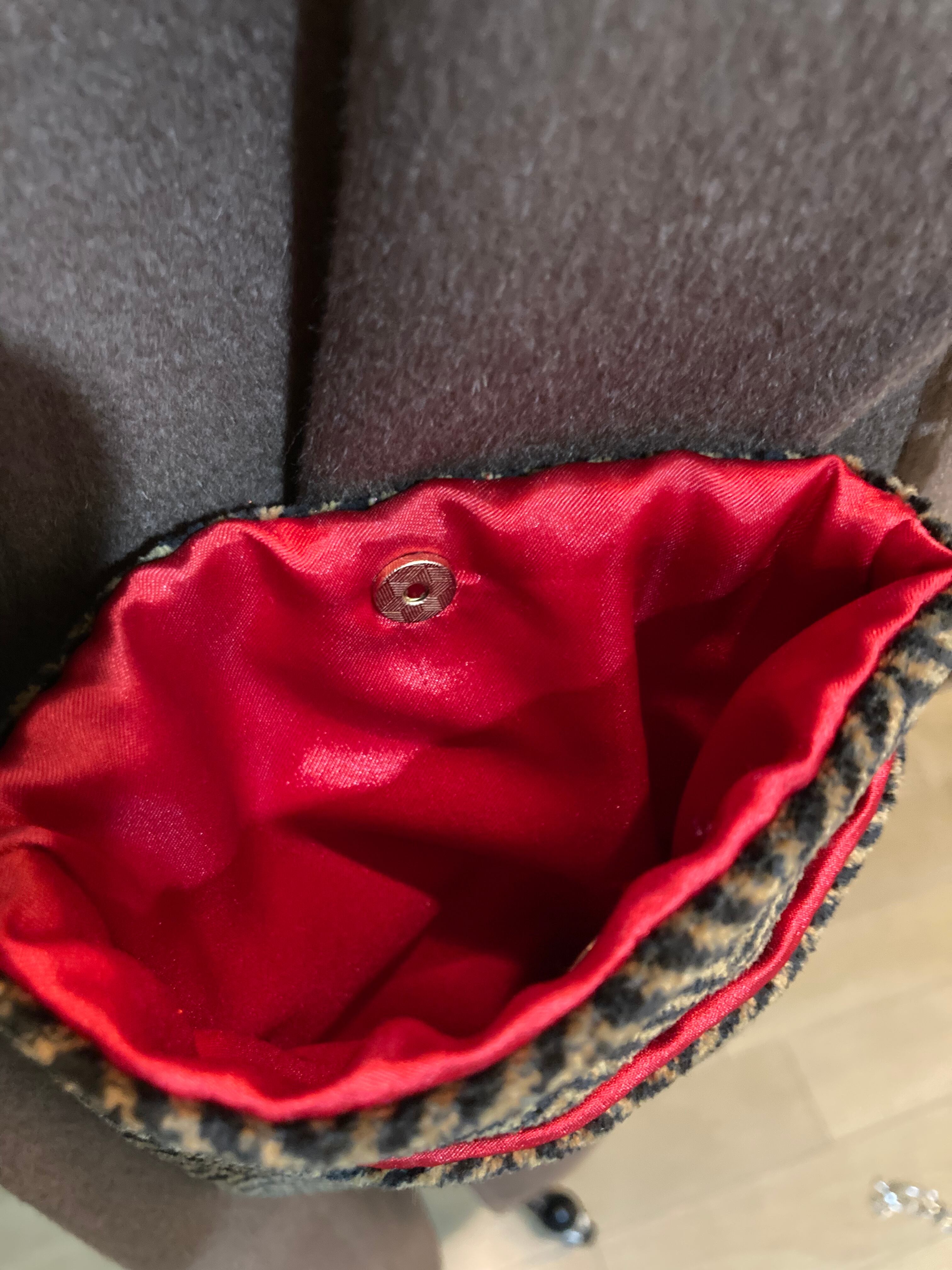 コーディロイのヘリンボン柄の生地で内側は赤のサテン生地です