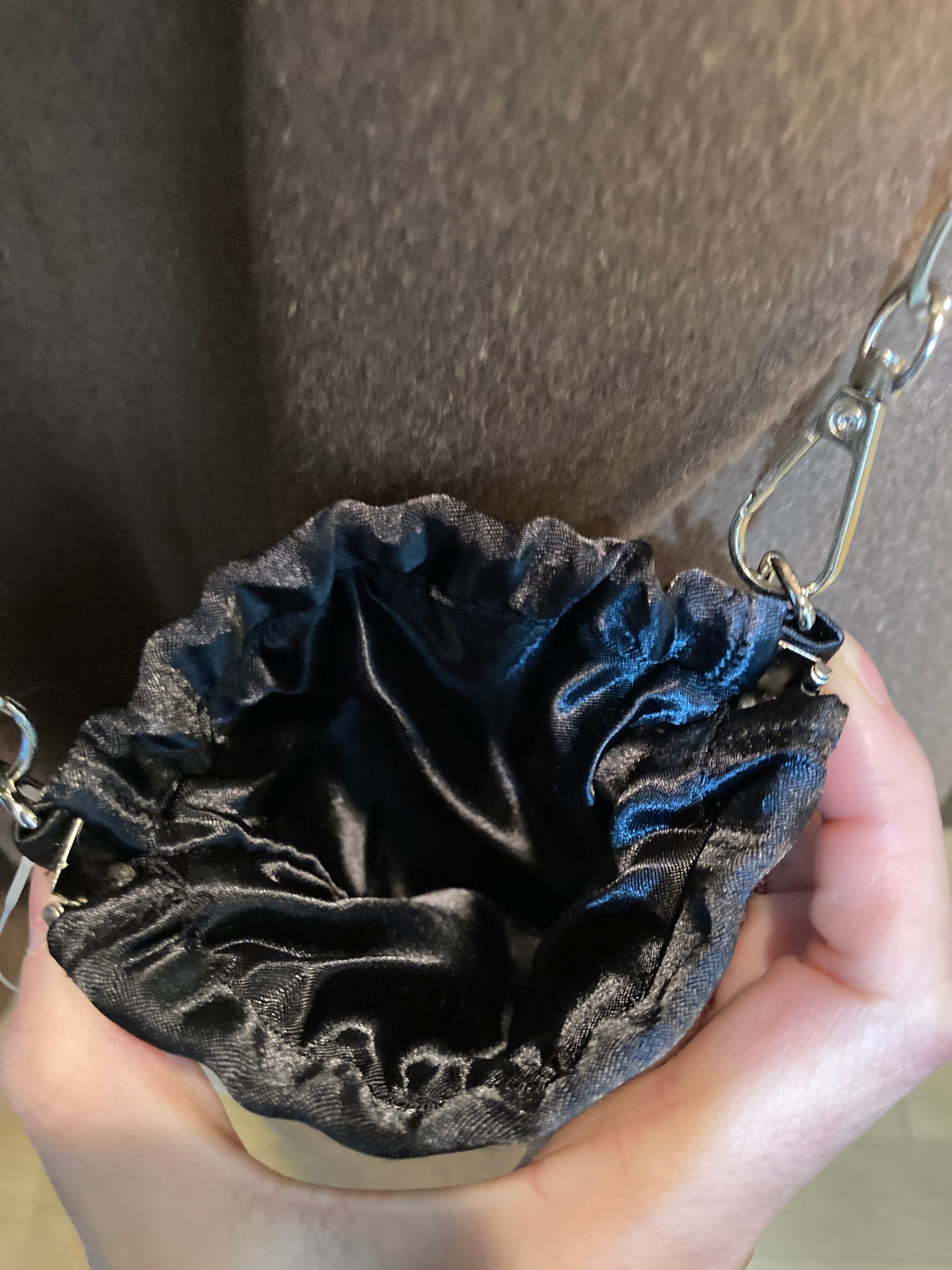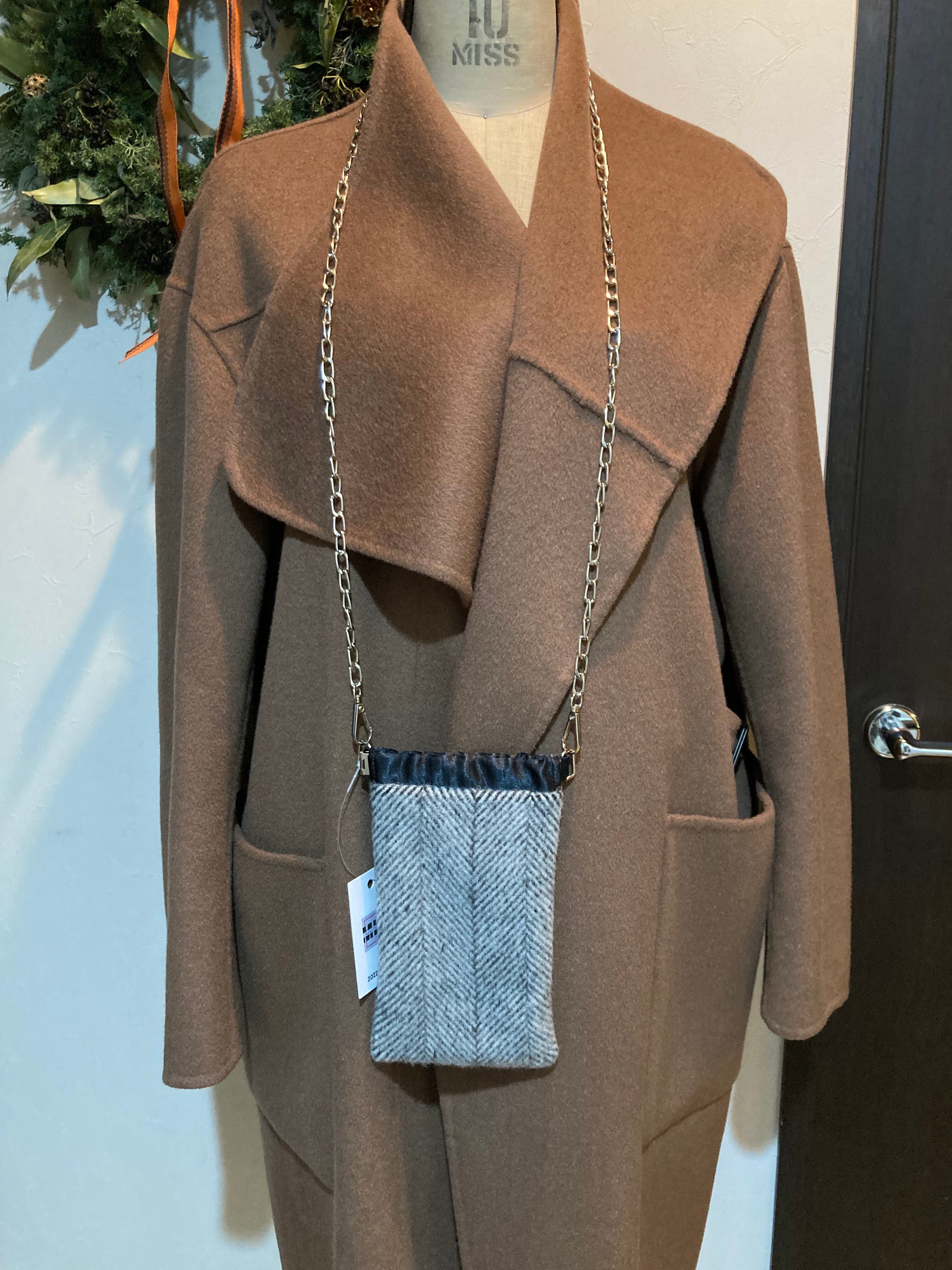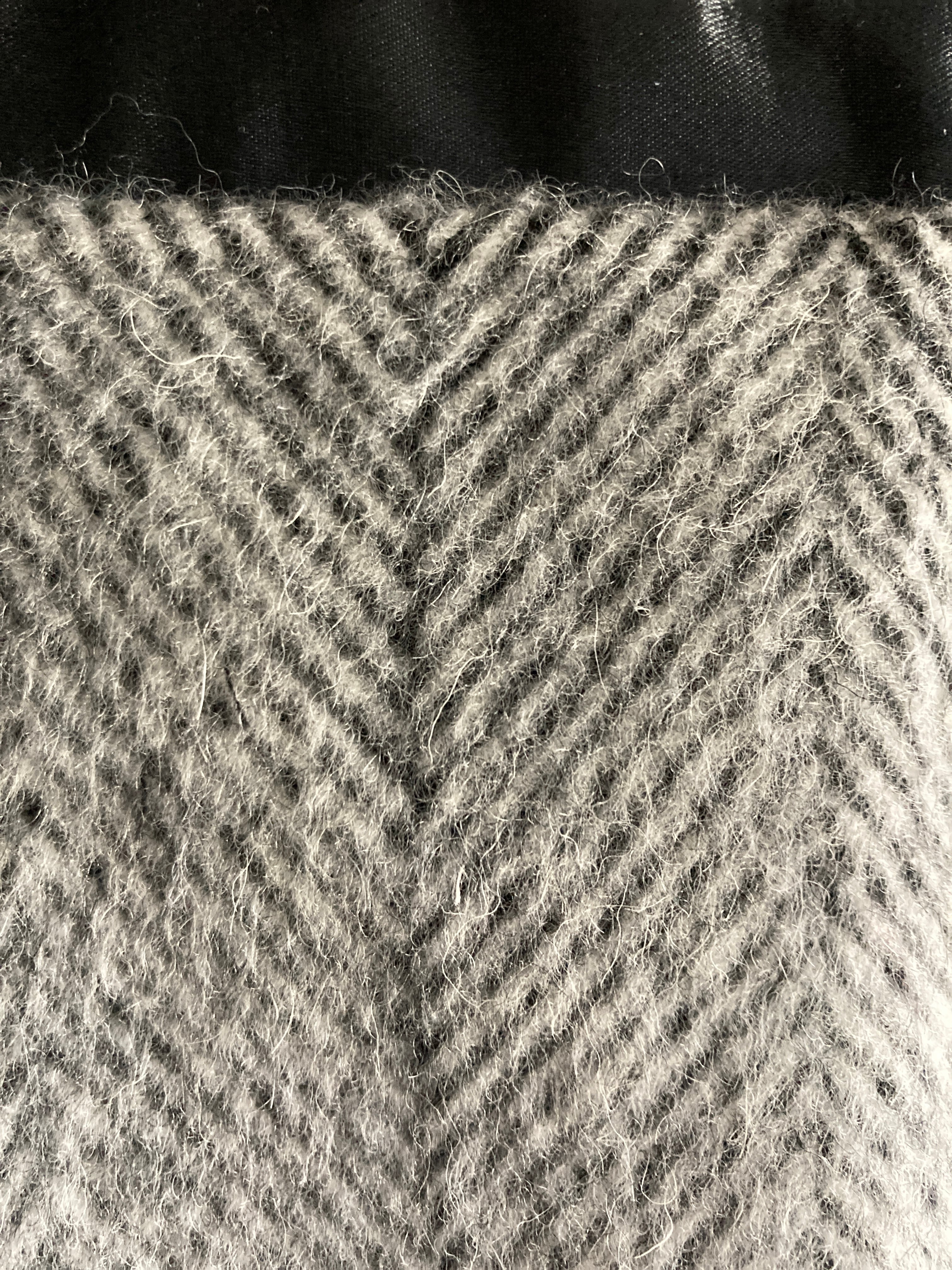 ウールシャギーのヘリンボン柄の生地で内側は黒のサテン生地です