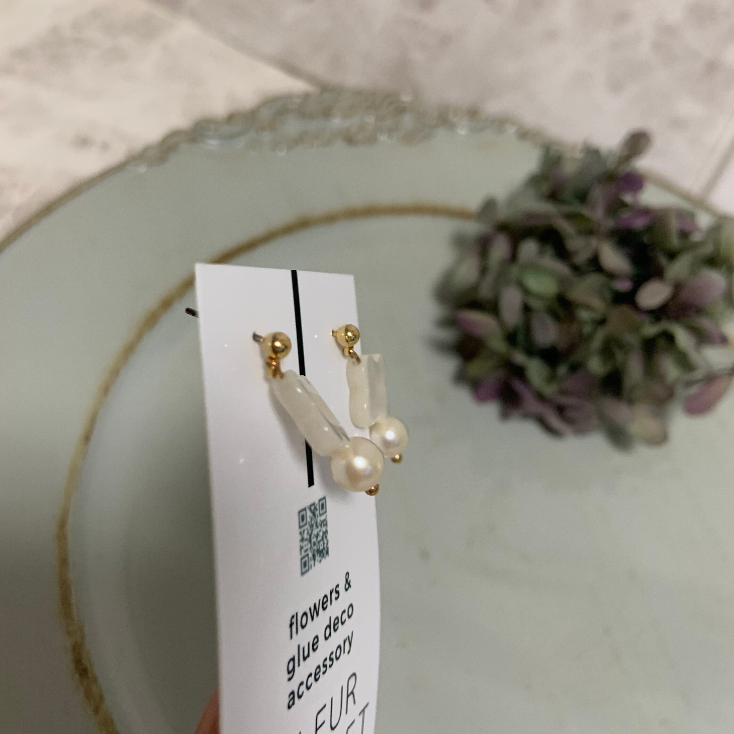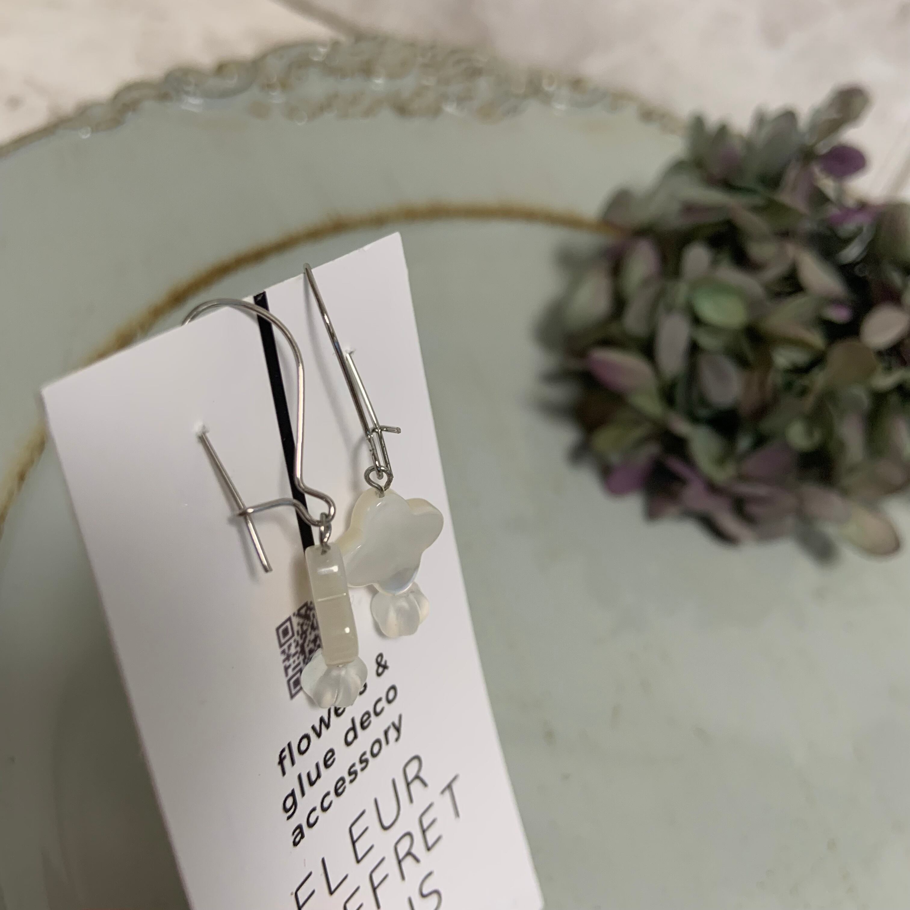花の形をしたマザーオブパールのピアスです。小粒のクリアチェコビーズと合わせたデザインは、上品で可愛いらしい印象を与えます。